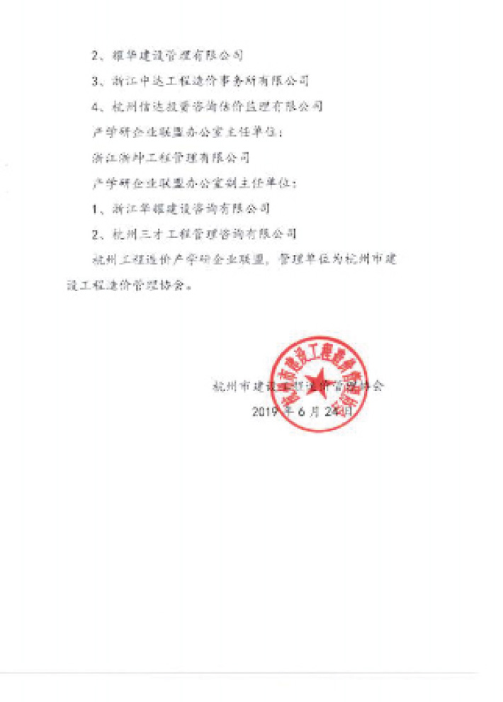 關(guān)于成立杭州工程造價(jià)產(chǎn)學(xué)研企業(yè)聯(lián)盟的通知